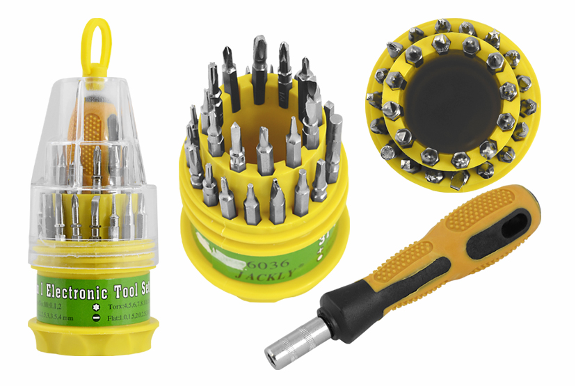 Zestaw zawiera rączkę oraz 30 sztuk różnego rodzaju końcówek / wkrętaków.